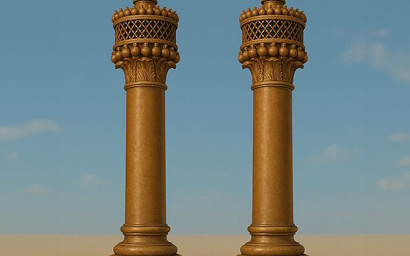 Un autre passage, 2 Chroniques 3:17, précise la logique “sud / nord” (une colonne au sud, l’autre au nord), ce qui donne déjà une chose utile : ces colonnes sont pensées comme un encadrement d’entrée, pas comme un motif décoratif flottant.