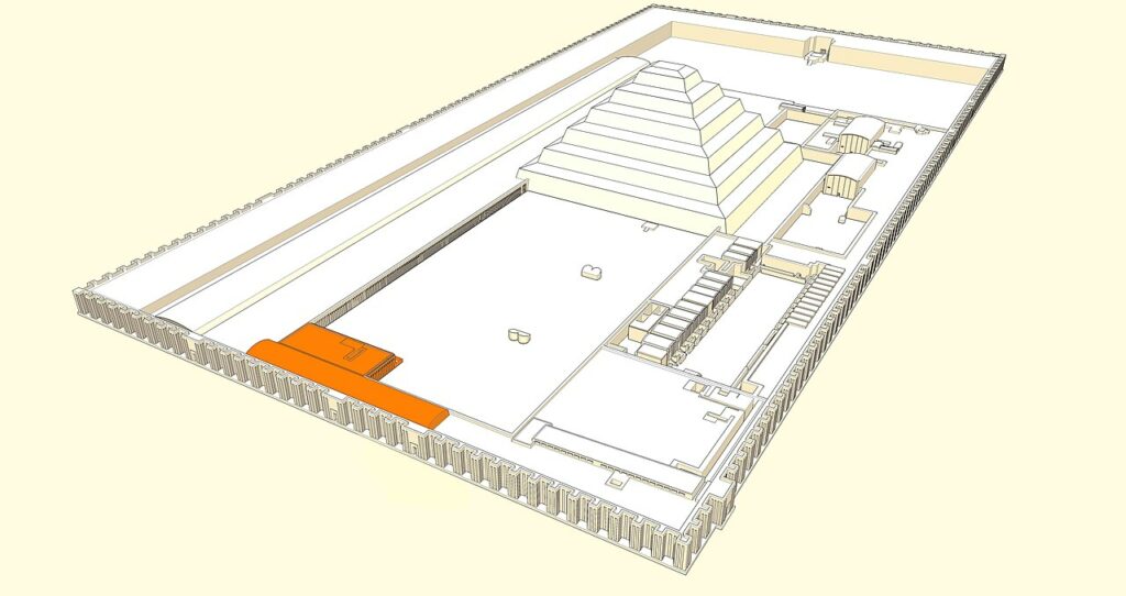 Particularité :Première pyramide monumentale d’Égypte ; premier complexe funéraire complet en pierre taillée ; œuvre de l’architecte Imhotep