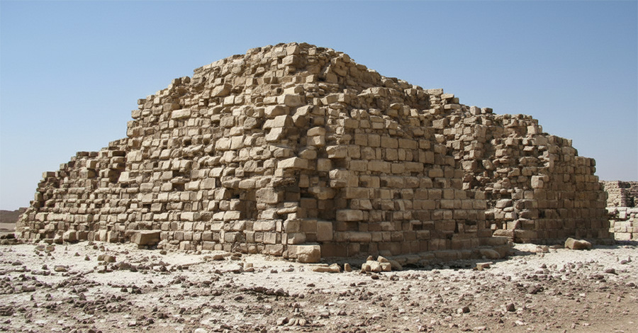 Cette petite pyramide se trouve à environ 7 kilomètres au sud du centre administratif de Minya, en Moyenne-Égypte. Aujourd’hui réduite à moins de 5 mètres de hauteur, elle était à l’origine une pyramide à degrés comptant probablement trois ou quatre niveaux. L’édifice était bâti en blocs de calcaire liés par un mortier mêlant boue, sable et chaux. En 1911, Raymond Weill fut le premier à l’étudier, suivi de Jean-Philippe Lauer. Le monument est attribué au roi Houni (2599-2575, IIIe dynastie) et présente une particularité notable : c’est la seule pyramide située sur la rive est du Nil. La plupart des égyptologues pensent toutefois qu’il ne s’agit pas d’un tombeau, mais d’un symbole de souveraineté lié à la montée du culte solaire au cours de la IIIe dynastie, ce qui expliquerait la présence de nombreux cénotaphes à degrés — monuments commémoratifs rappelant la forme d’un tombeau sans en être un — érigés durant cette période.